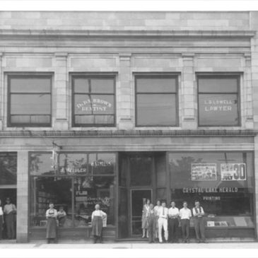 The street level of the Teckler Building has three separate retail spaces. The largest of these is closest to the corner. It was originally leased to the North Shore Electric Company (Public Service Co.), with a grocery store and millinary (hat) shop filling the two smaller spaces. Through the years, a wide variety of businesses have occupied the smaller first floor storefronts, including Crystal Photo Co. and Bellows Pharmacy. Public Service Co. maintained its large office in the Teckler Building for decades before eventually turning the space over to the Crystal Lake Savings & Loan.